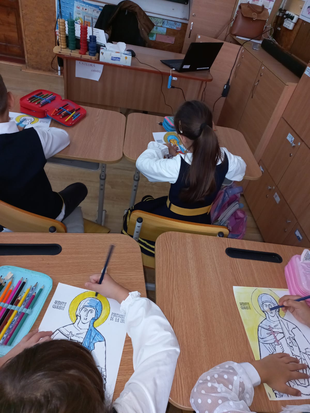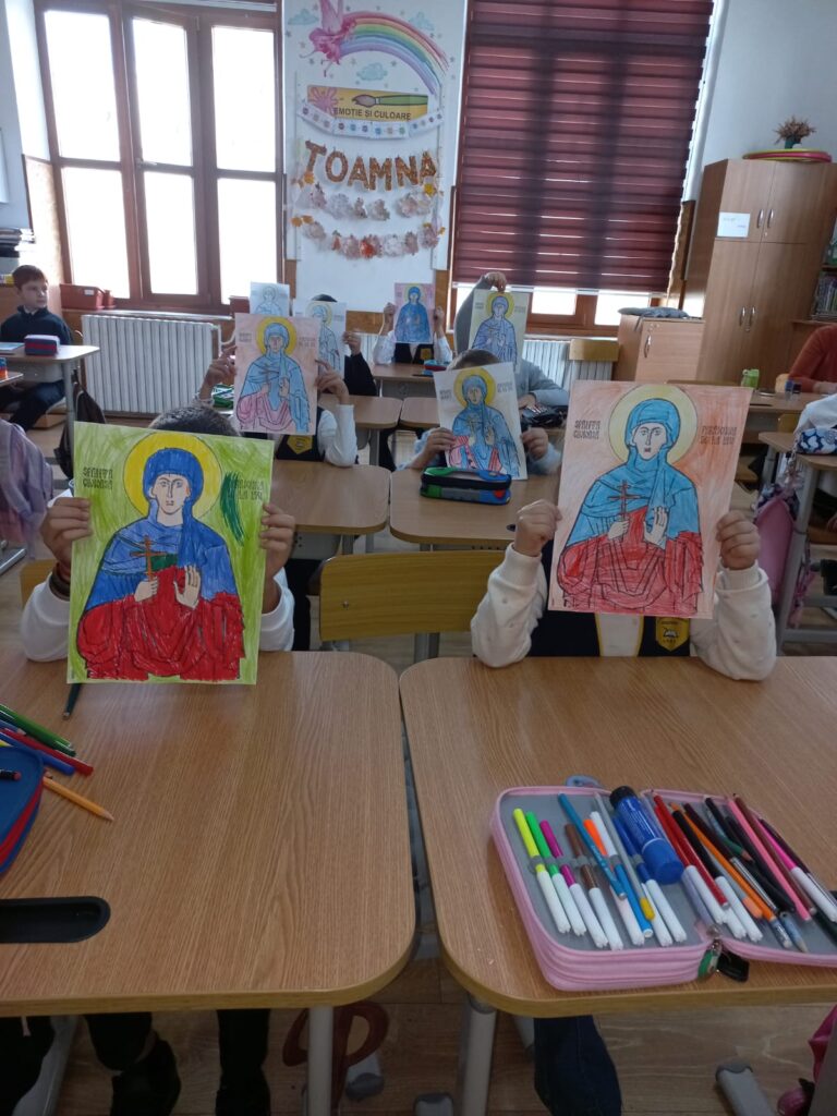 Un moment central al atelierelor a fost dedicat sărbătorii Sfintei Cuvioase Parascheva, a cărei icoană a fost surprinsă în culori de către tinerii participanți.