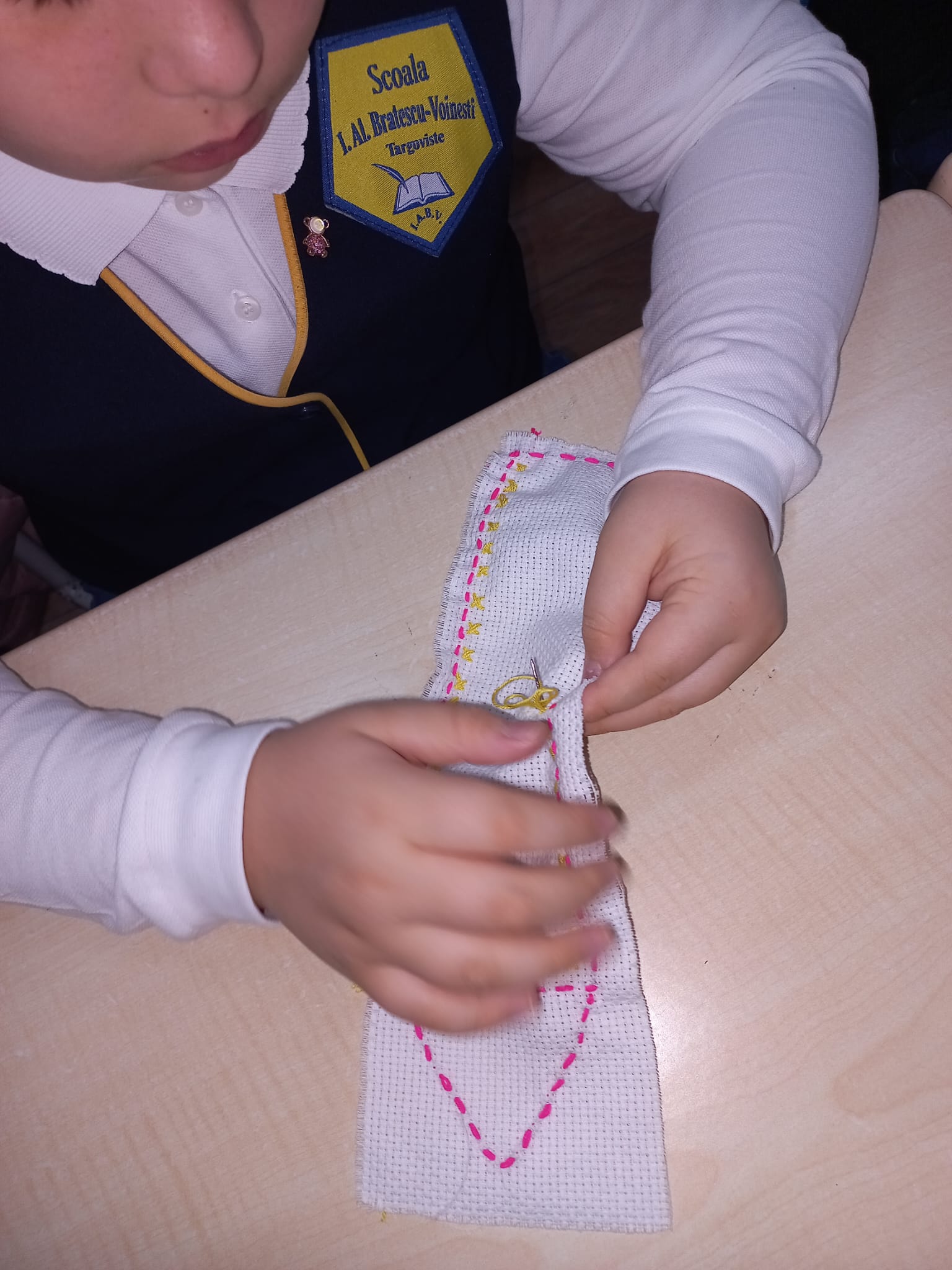 Activitățile săptămânii au inclus sesiuni interactive de pictură, colorat și cusut, oferindu-le copiilor oportunitatea de a explora diverse tehnici artistice.